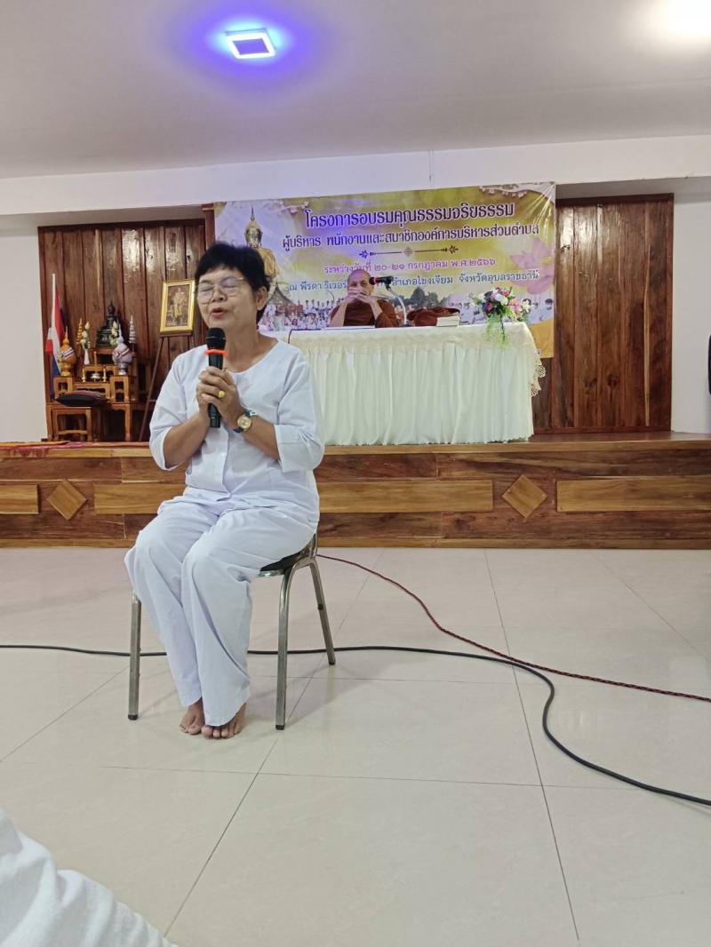 รายละเอียด : วันที่ 20 - 21 กรกฎาคม 2566 ได้จัดทำโครงการอบรมคุณธรรม จริยธรรม ผู้บริหาร พนักงานและสมาชิกสภาองค์การบริหารส่วนตำบล ประจำปี 2566 ณ พีรดา รีเวอร์วิว รีสอร์ท อำเภอโขงเจียม จังหวัดอุบลราชธานี เพื่อให้ผู้เข้าร่วมอบรม มีคุณธรรม จริยธรรมตามหลักธรรมทางพระพุทธศาสนา มีประสิทธิภาพในการปฎิบัติงานและการดำเนินชีวิตประจำวัน โดยมีผู้เข้าร่วมโครงการ ประกอบด้วย ผู้บริหาร พนักงาน สมา่ชิกสภาองค์การบริหารส่วนตำบลหนองอ้ม กำนัน ผู้ใหญ่บ้าน