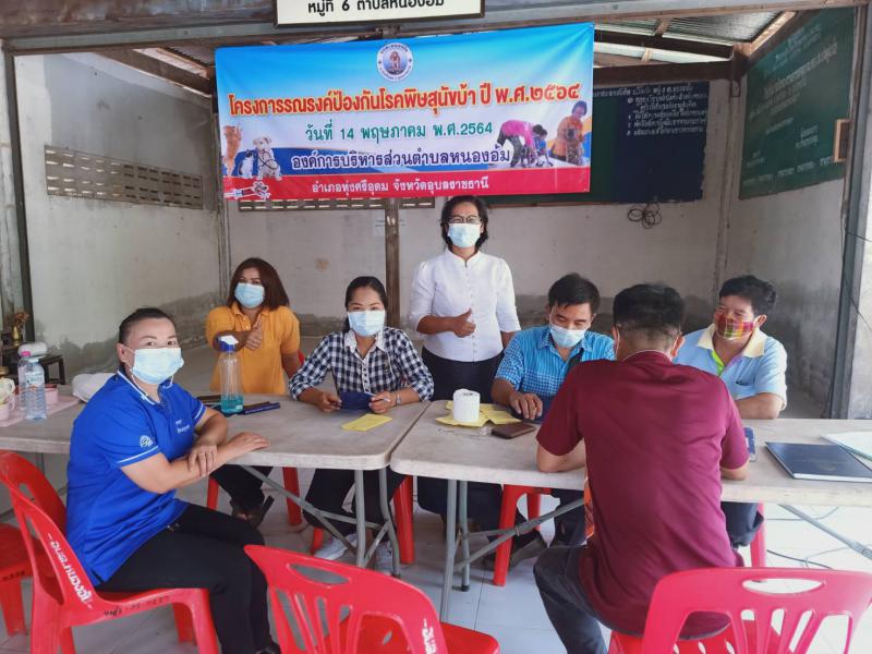 รายละเอียด : วันที่ 14 พฤษภาคม 2564 เวลา 09.30 น. นายอมรศาสตร์ กุลมาตย์ นายก อบต.หนองอ้ม พร้อมด้วย คณะผู้บริหาร ผู้นำชุมชน สมาชืกสภา พนักงาน อาสาสมัครปศุสัตว์ประจำหมูบ้าน ได้ร่วมกันรณรงค์ฉีดวัคซีนป้องกันโรคพิษสุนัขบ้าให้กับสุนัขและแมวในพื้นที่ โดยออกบริการให้ฉีดวัคซีนป้องกันโรคพิษสุนัขบ้าให้กับสุนัขและแมวฟรี