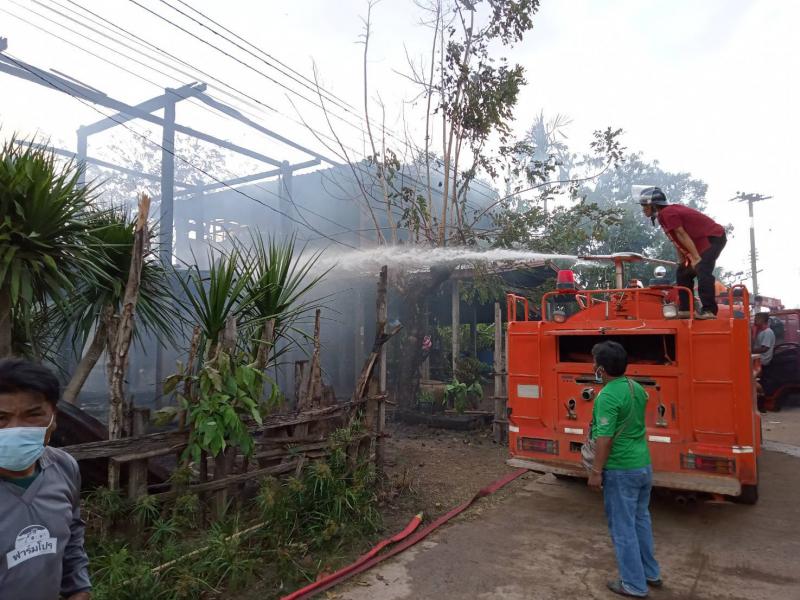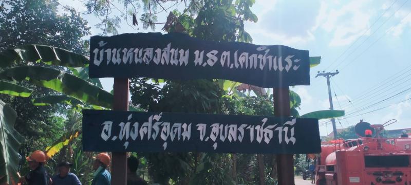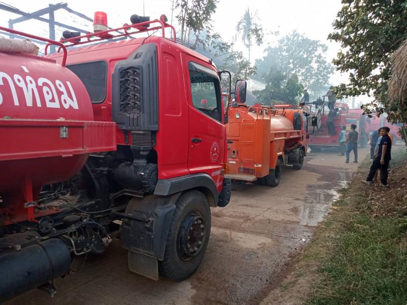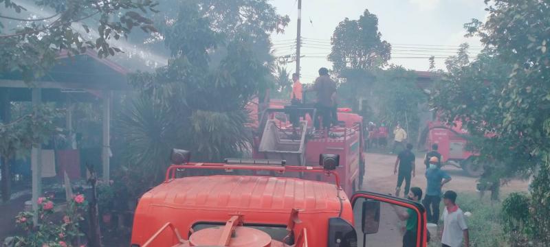 งานป้องกันและบรรเทาสาธารณภัยองค์การบริหารส่วนตำบลหนองอ้มออกปฏิบัติหน้าที่เพื่อระงับเหตุเพลิงไหม้