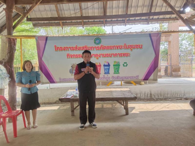 รายละเอียด : วันที่ 9 พฤษภาคม 2567 เวลา 09.00 น. นายประเสริฐ ณัฐเจริญรัตน์ นายกองค์การบริหารส่วนตำบลหนองอ้ม ได้มอบหมายให้ นายสะลอง เทนโสภา รองนายกองค์การบริหารส่วนตำบล นายสมบูรณ์ สลัดทุกข์ ประธานสภาองค์การบริหารส่วนตำบล พร้อมด้วย สมาชิกสภาท้องถิ่น ข้าราชการ ผู้นำชุมชน ร่วมให้การต้อนคณะศึกษาดูงานจากเทศบาลตำบลขี้เหล็ก อำเภอน้ำขุ่น จังหวัดอุบลราชธานี เพื่อเเลกเปลี่ยน เรียนรู้การจัดการธนาคารขยะชุมชน การจัดการขยะมูลฝอยชุมชน ณ วัดบ้านหนองขี้เห็น ตำบลหนองอ้ม
