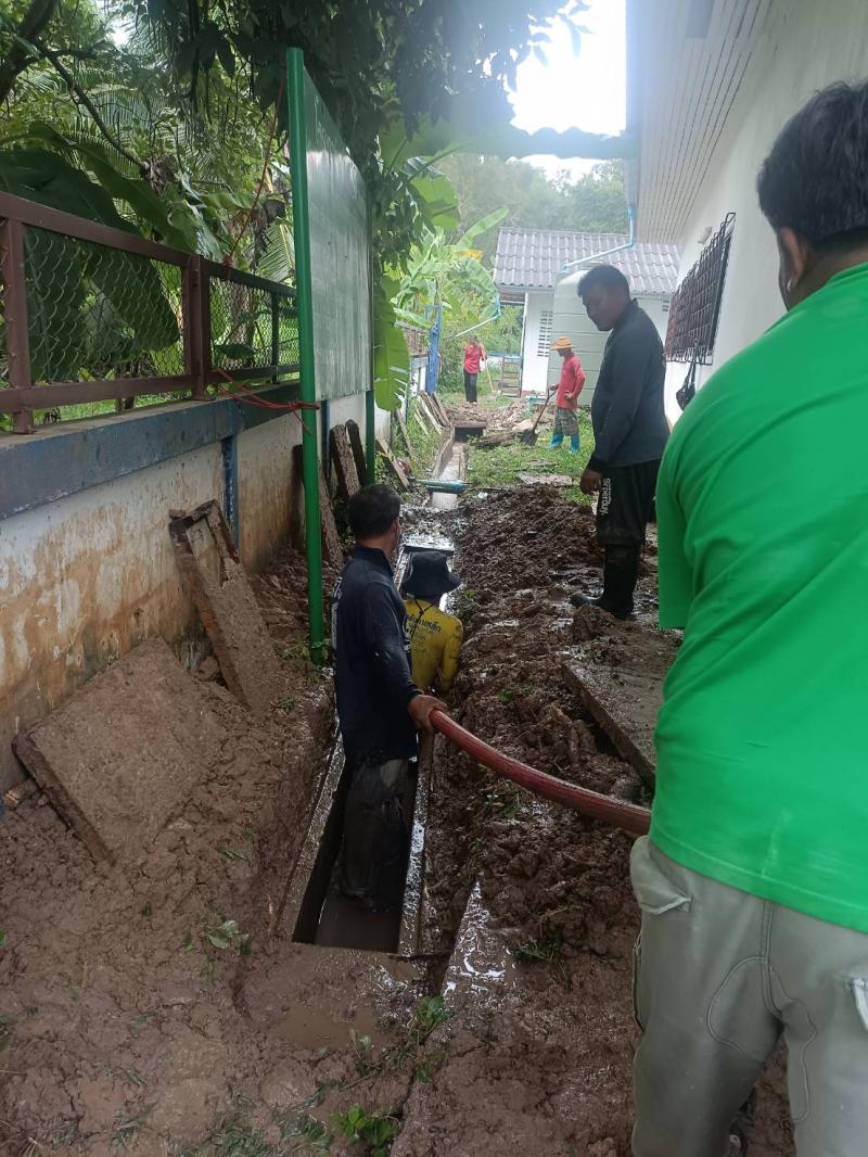 : ล้างท่อระบายน้ำในศูนย์พัฒนาเด็กเล็ก เพื่อบรรเทาความเดือดร้อน เนื่องจากคลองมีตะกอนดินอุดตัน