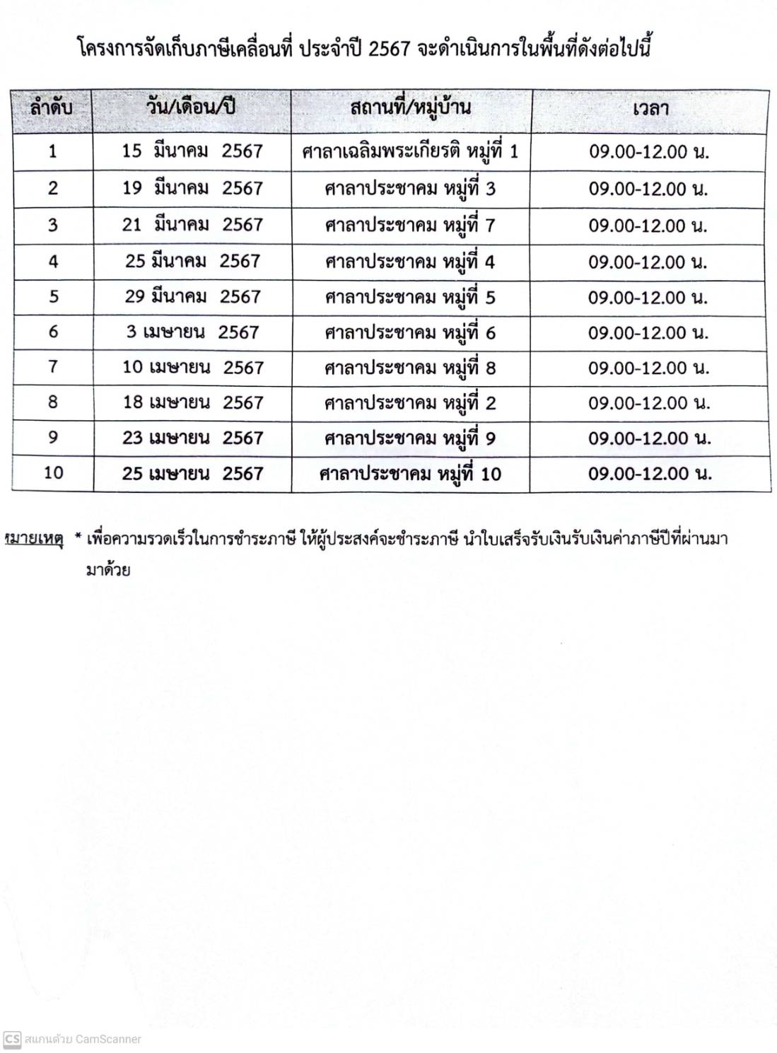 ประกาศ เรื่อง การประชาสัมพันธ์โครงการจัดเก็บภาษีเคลื่อนที่ ประจำปี 2567