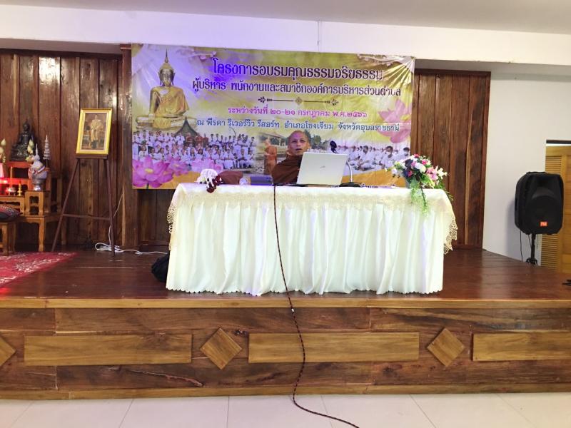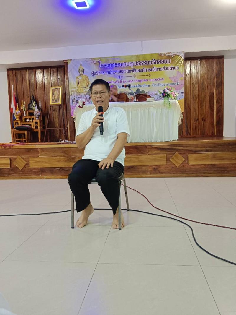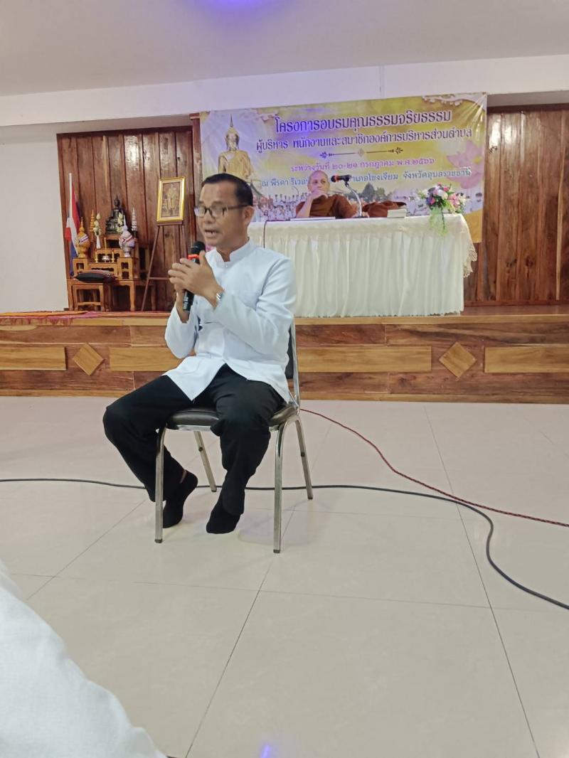 รายละเอียด : วันที่ 20 - 21 กรกฎาคม 2566 ได้จัดทำโครงการอบรมคุณธรรม จริยธรรม ผู้บริหาร พนักงานและสมาชิกสภาองค์การบริหารส่วนตำบล ประจำปี 2566 ณ พีรดา รีเวอร์วิว รีสอร์ท อำเภอโขงเจียม จังหวัดอุบลราชธานี เพื่อให้ผู้เข้าร่วมอบรม มีคุณธรรม จริยธรรมตามหลักธรรมทางพระพุทธศาสนา มีประสิทธิภาพในการปฎิบัติงานและการดำเนินชีวิตประจำวัน โดยมีผู้เข้าร่วมโครงการ ประกอบด้วย ผู้บริหาร พนักงาน สมา่ชิกสภาองค์การบริหารส่วนตำบลหนองอ้ม กำนัน ผู้ใหญ่บ้าน