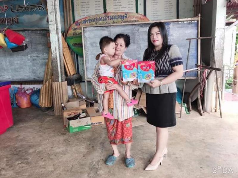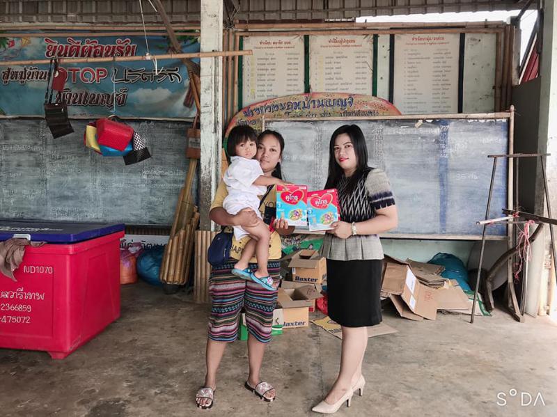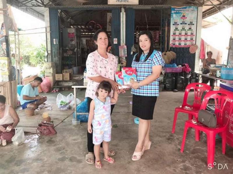 : วันที่ 7 lสิงหาคม 2563 มอบอาหารเสริมนมสำหรับเด้กผู้ประสบปัญหาทางสังคมในพื้นที่ตำบลหนองอ้ม