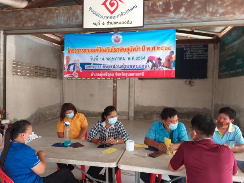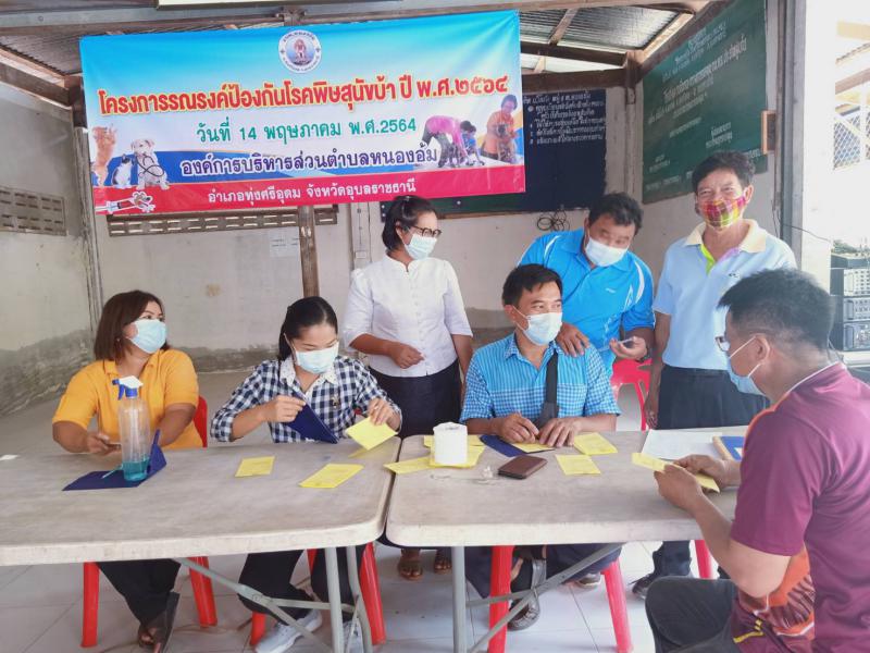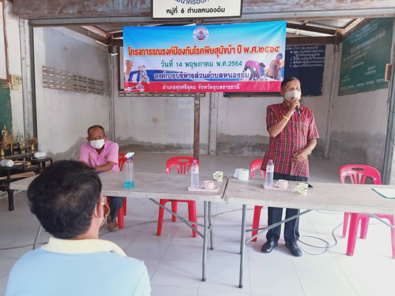 รายละเอียด : วันที่ 14 พฤษภาคม 2564 เวลา 09.30 น. นายอมรศาสตร์ กุลมาตย์ นายก อบต.หนองอ้ม พร้อมด้วย คณะผู้บริหาร ผู้นำชุมชน สมาชืกสภา พนักงาน อาสาสมัครปศุสัตว์ประจำหมูบ้าน ได้ร่วมกันรณรงค์ฉีดวัคซีนป้องกันโรคพิษสุนัขบ้าให้กับสุนัขและแมวในพื้นที่ โดยออกบริการให้ฉีดวัคซีนป้องกันโรคพิษสุนัขบ้าให้กับสุนัขและแมวฟรี