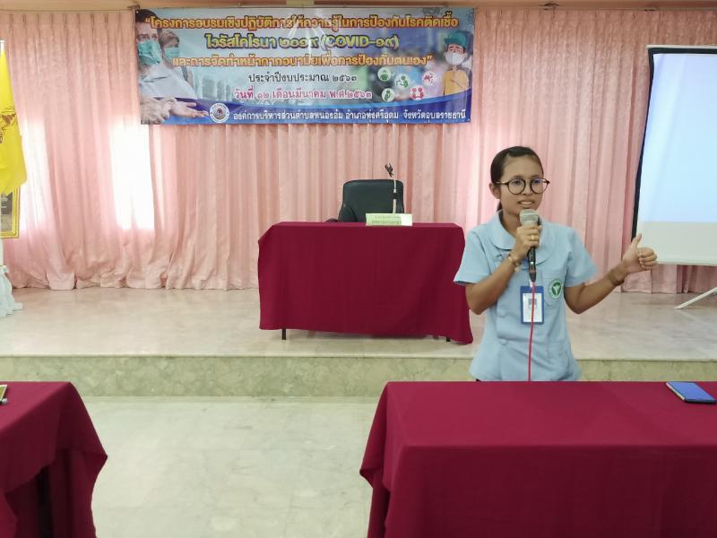 รายละเอียด : วันที่ 12 มีนาคม 2563 เวลา 09.30 น. ผู้บริหาร ข้าราชการ พนักงาน พนักงานจ้าง องค์การบริหารส่วนตำบลหนองอ้ม อสม. จิตอาสา ผู้นำชุมชนได้เข้าร่วมโครงการอบรมเชิงปฎิบัติการให้ความรู้ในการป้องกันโรคติดเชื้อไวรัสโคโรน่า 2019 (Covid-2019) และการจัดทำหน้ากากอนามัยเพื่อป้องกันตนเองประจำปีงบประมาณ 2563