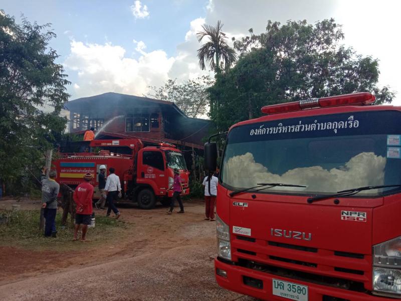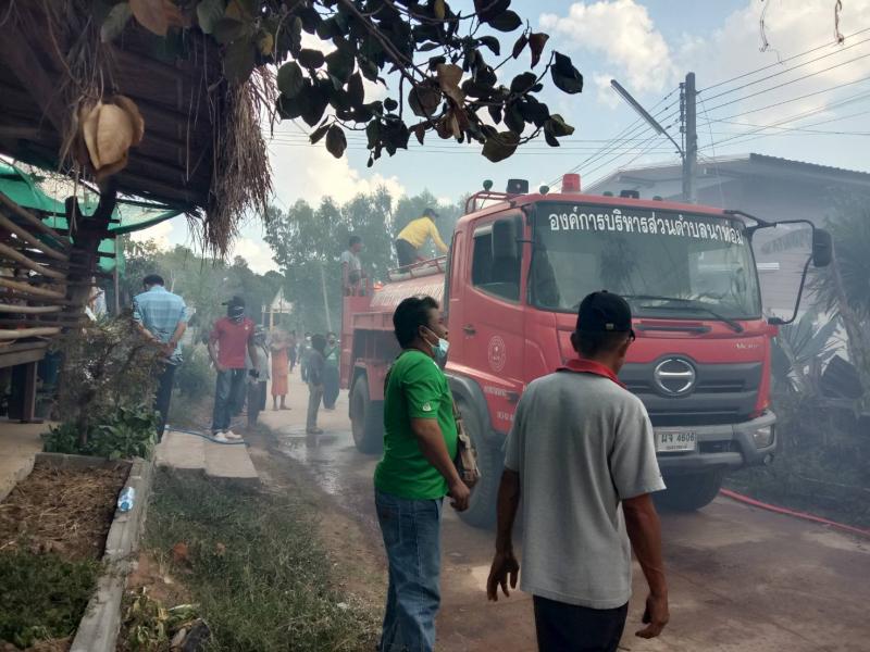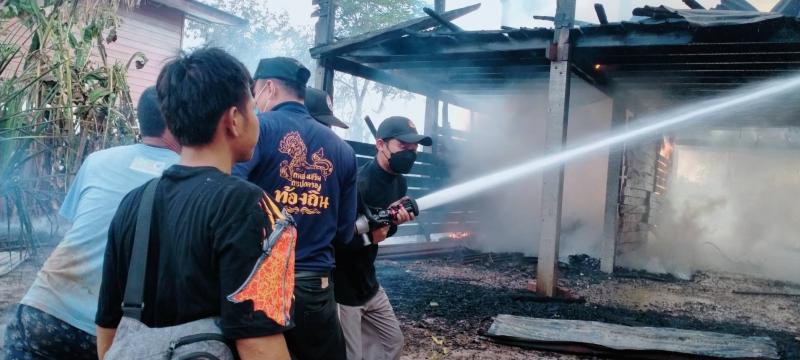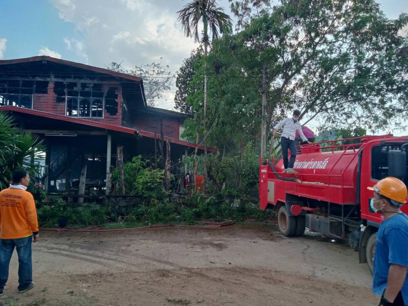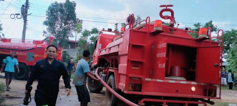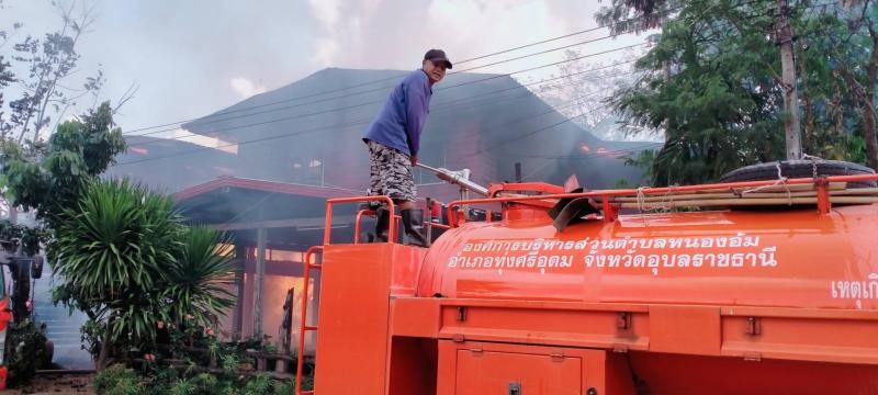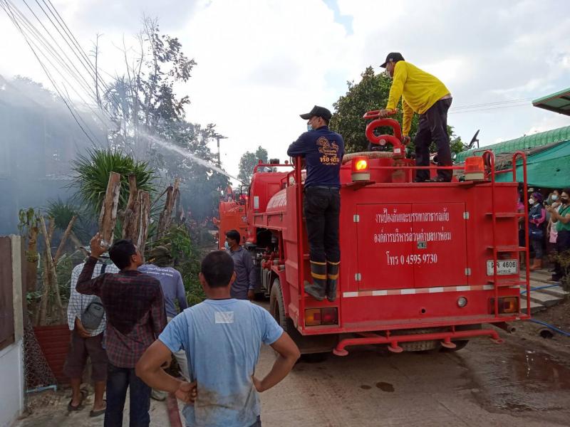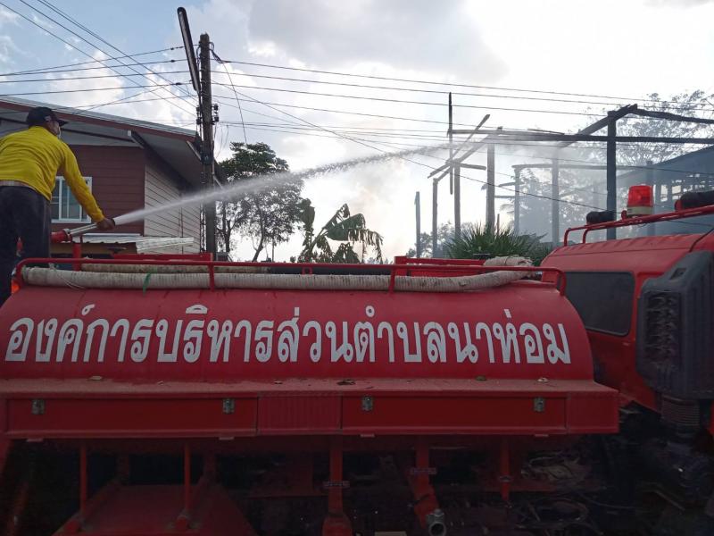 งานป้องกันและบรรเทาสาธารณภัยองค์การบริหารส่วนตำบลหนองอ้มออกปฏิบัติหน้าที่เพื่อระงับเหตุเพลิงไหม้