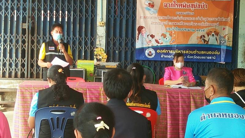 รายละเอียด : วันที่ 9 มิถุนายน 2565 เวลา 09.30 น. นายประเสริฐ ณัฐเจริญรัตน์ นายกองค์การบริหารส่วนตำบลหนองอ้มได้เป็นประธานในพิธีเปิดโครงการสัตว์ปลอดโรค คนปลอดภัย จากโรคพิษสุนัขบ้า ตามพระปณิธานศาสตราจารย์ ดร.สมเด็จพระเจ้าน้องนางเธอ เจ้าฟ้าจุฬาภรณ์วลัยลักษณ์อัครราชกุมารี กรมพระศรีสวางควัฒน วรขัตติยราชนารี ณ ศาลาประชาคม บ้านเบญจ์ หมู่ที่ 4 ตำบลหนองอ้ม โดยมีพิธีมอบวัคซีนพร้อมอุปกรณ์การฉีดให้กับอาสาสมัครปศุสัตว์ประจำหมู่บ้าน เพื่อนำไปฉีดให้กับสุนัขและเเมวในพื้นที่ เพื่อป้องกันการเกิดโรคพิษสุนัขบ้าในสัตว์เลี้ยงของประชาชน