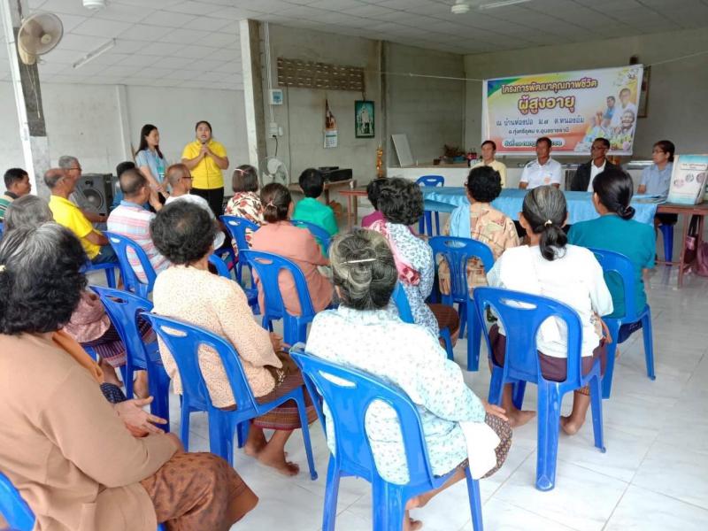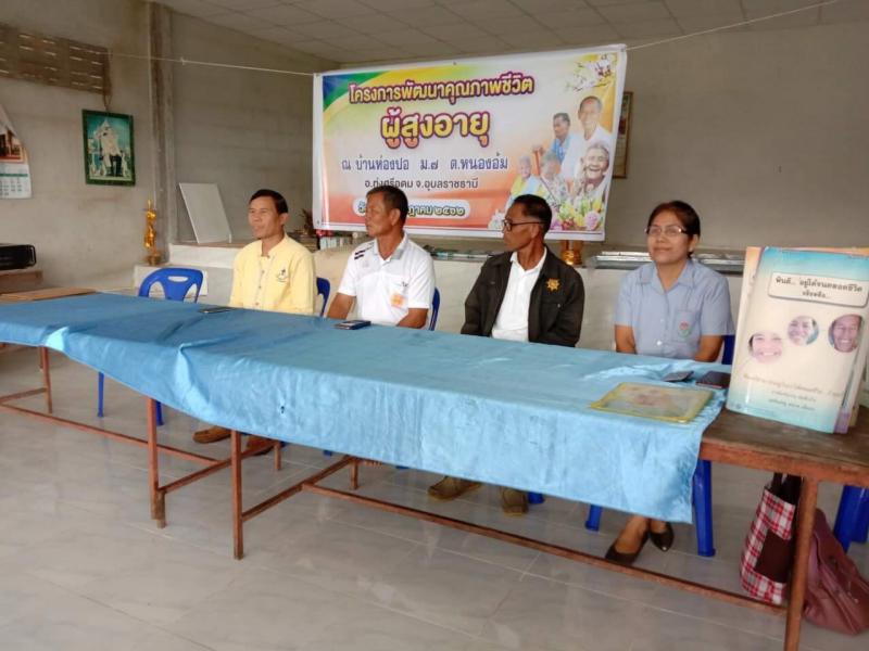: องค์การบริหารส่วนตำบลหนองอ้มร่วมกับโรงพยาบาลส่งเสริมสุขภาพตำบลหนองอ้มได้ร่วมกันดำเนินโครงการพัฒนาศักยภาพแกนนำผู้สูงอายุ