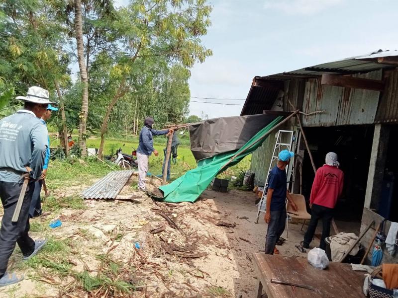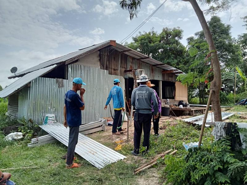 รายละเอียด : วันที่ 19 กรกฎาคม 2565 เวลา 09.00 น. นายประเสริฐ ณัฐเจริญรัตน์ นายกองคืการบริหารส่วนตำบลหนองอ้ม มอบหมายให้ นายสมัย คำศรี เลขานุการนายกองค์การบริหารส่วนตำบลหนองอ้ม นางสาวสายใจ บุญมางำ นักพัฒนาชุมชน และเจ้าหน้าที่องค์การบริหารส่วนตำบลหนองอ้ม ร่วมกับผู้นำชุมชนบ้านเบญจ์ หมู่ที่ 4 โดย นายทองวิลัย โหง่นคำ ผู้ใหญ่บ้าน พร้อมด้วย ผู้นำชุมชน จิตอาสา ร่วมกันดำเนินการซ่อมแซมหลังคาบ้านพักอาศัยผู้สูงอายุ ราย นางละมุด สายแก้ว บ้านเลขที่ 190 ม.4 ตำบลหนองอ้ม เพื่อพัฒนาคุณภาพชีวิตด้านที่อยู่อาศัยให้มีความมั่นคง แข็งแรง ปลอดภัย และบรรเทาความเดือนร้อนในเบื้องต้น