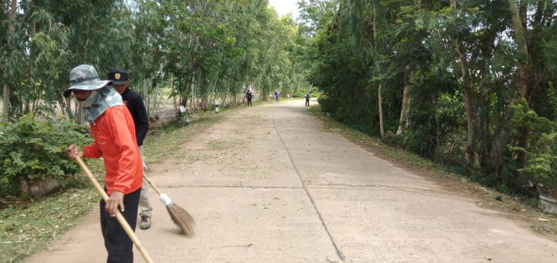 ทำความสะอาดบริเวณถนนสายรอง ทางเข้าสำนักงาน
