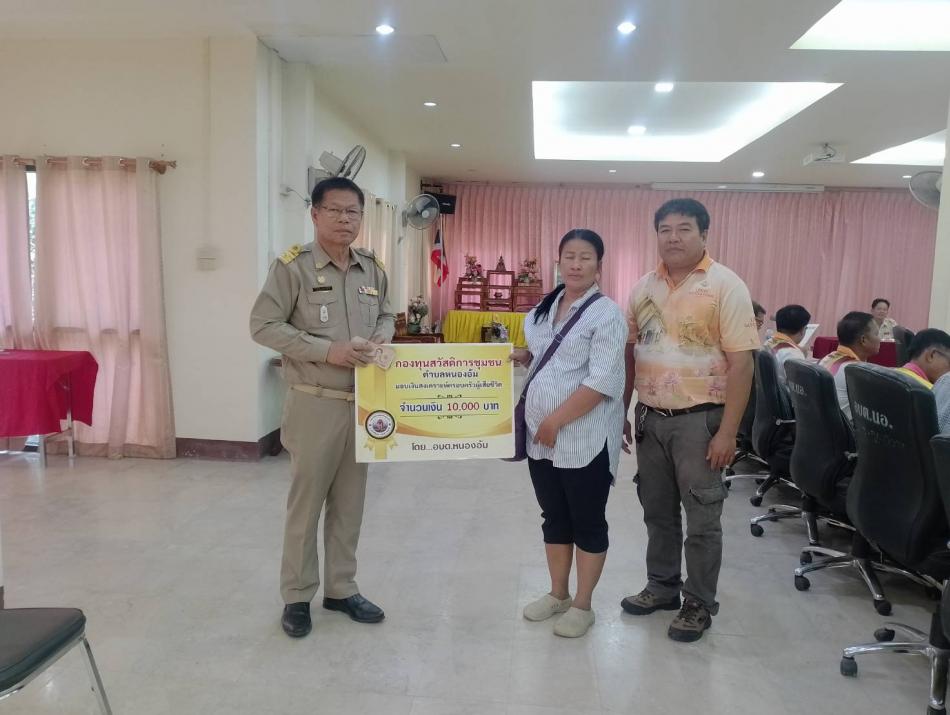 กองทุนสวัสดิการชุมชนตำบลหนองอ้ม มอบเงินสวัสดิการสงเคราะห์ครอบครัวผู้เสียชีวิตและคลอดบุตร [1 พฤษภาคม 2568]