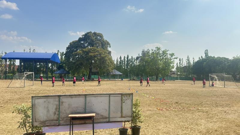 ร่วมให้กำลังใจเยาวชนโรงเรียนบ้านหนองอ้ม ในการฝึกทักษะการเล่นกีฬาฟุตบอล