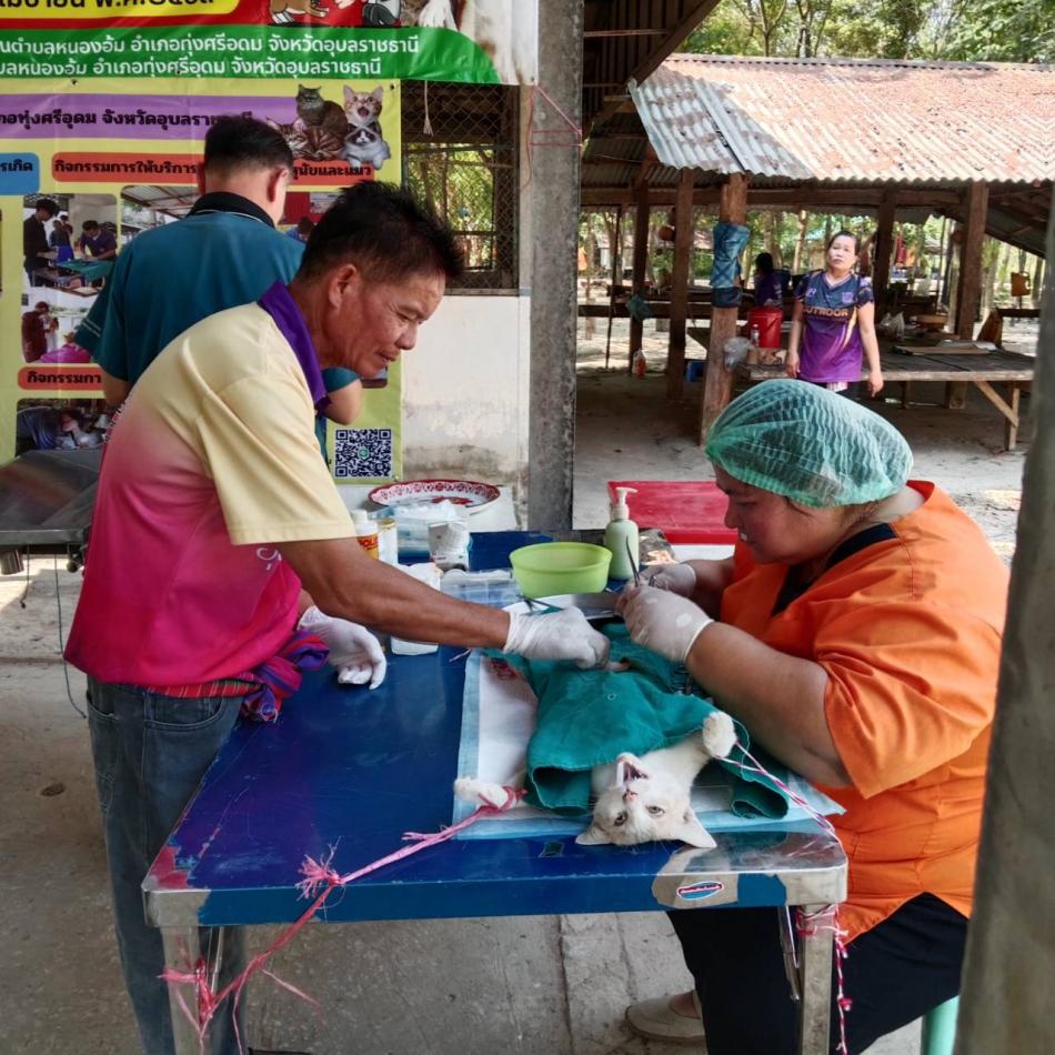 วันที่ 8 เมษายน 2569 เวลา 09.30 น. ณ ศาลาประชาคมบ้านหนองสีขา หมู่ 5 นายประเสริฐ ณัฐเจริญรัตน์ นายกองค์การบริหารส่วนตำบลหนองอ้ม ได้เป็นประธานเปิดโครงการสัตว์ปลอดโรค คนปลอดภัย โรคพิษสุนัขบ้า ตามพระปณิธาน ศาสตราจารย์ ดร.สมเด็จเจ้าฟ้าฯ กรมพระศรีสวางควัฒน วรขัตติยราชนารี ประจำปีงบประมาณ 2569 โดยร่วมกับ ปศุสัตว์อำเภอทุ่งศรีอุดม และอาสาสมัครปศุสัตว์ประจำหมู่บ้าน ในการให้ความรู้ในการป้องกันโรคพิษสุนัขบ้า บริการฉีดวัคซีนป้องกันโรคพิษสุนัขบ้า และผ่าตัดทำหมันให้กับสุนัขเเละแมว ในพื้นที่