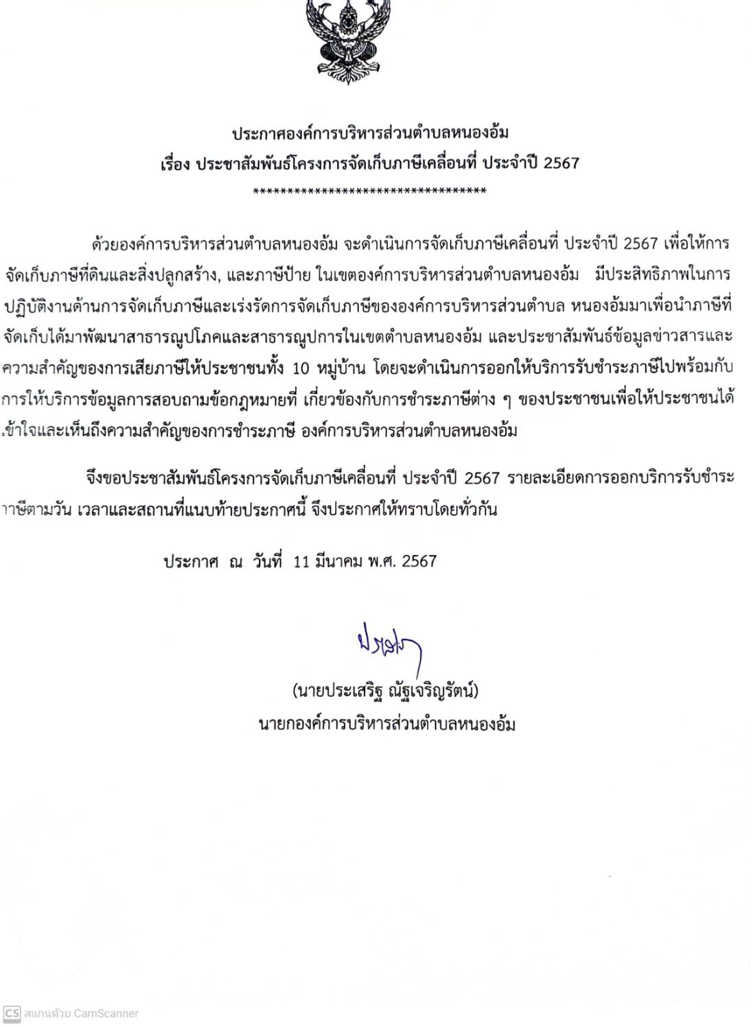 ประกาศ เรื่อง การประชาสัมพันธ์โครงการจัดเก็บภาษีเคลื่อนที่ ประจำปี 2567